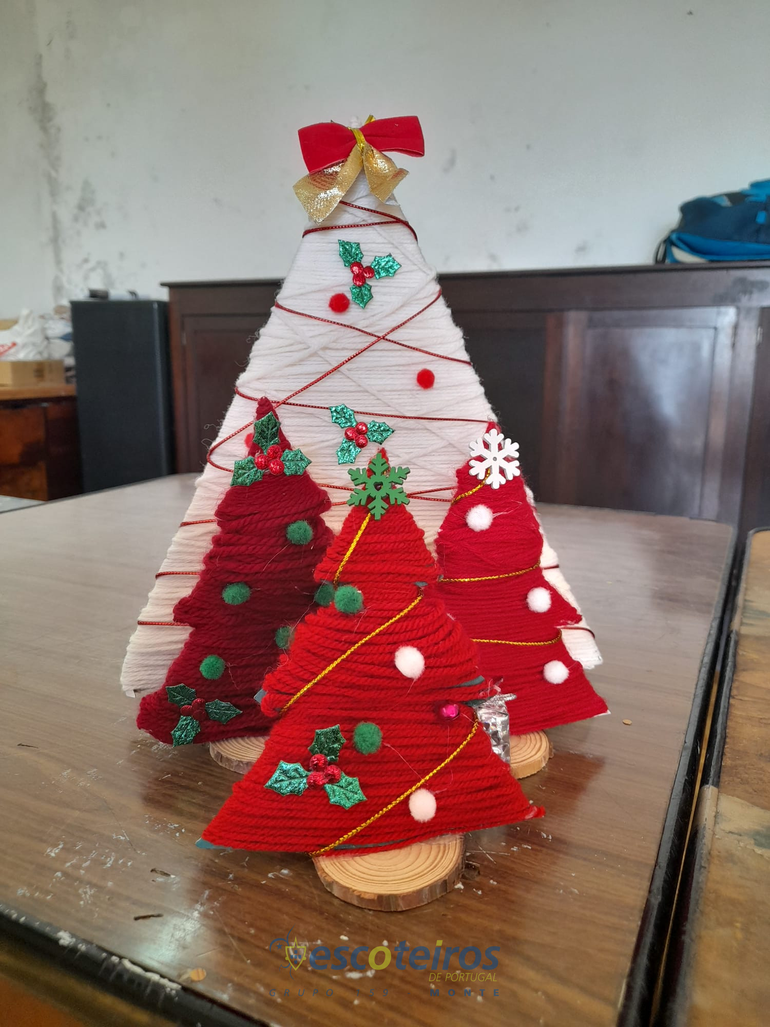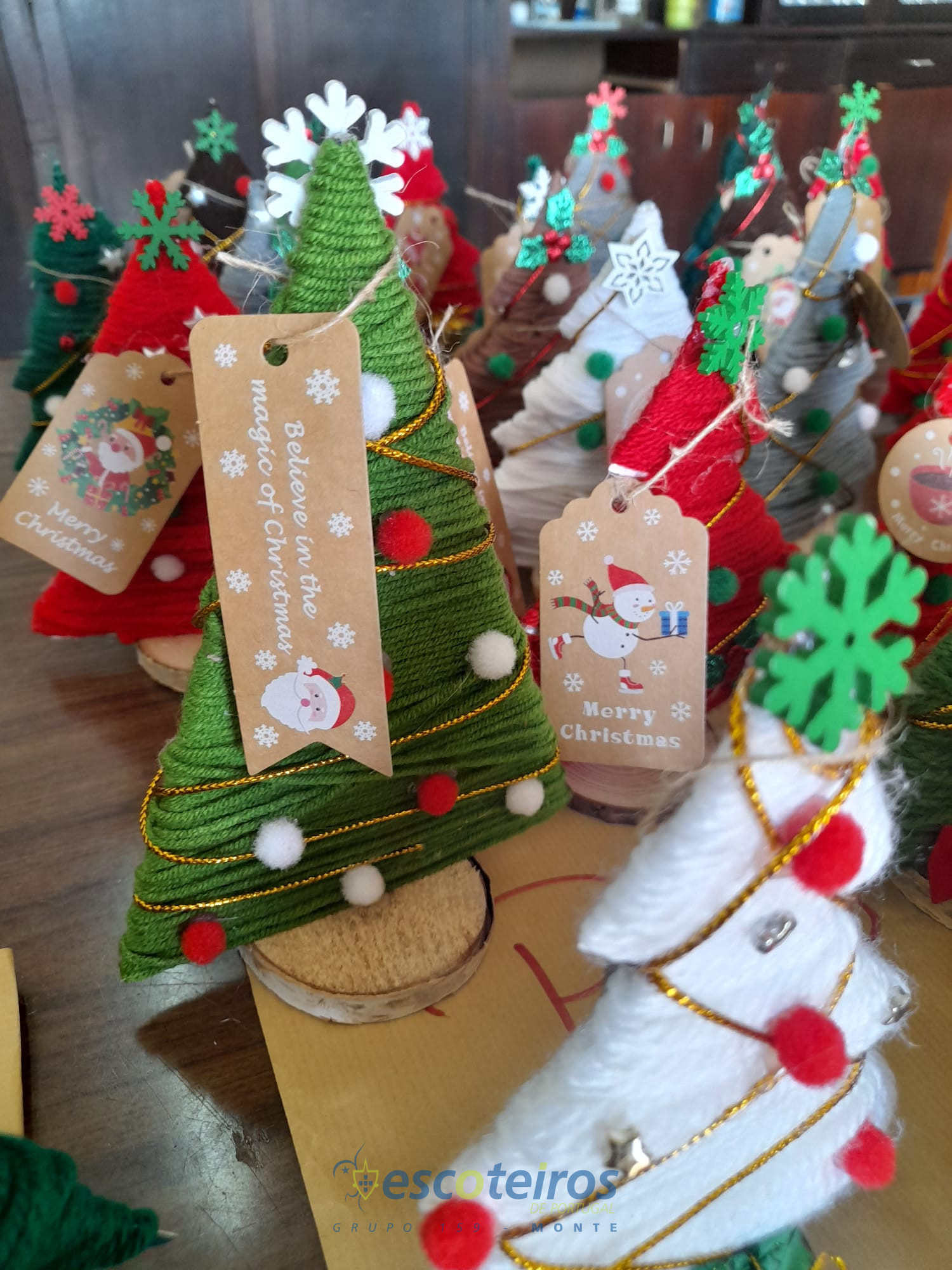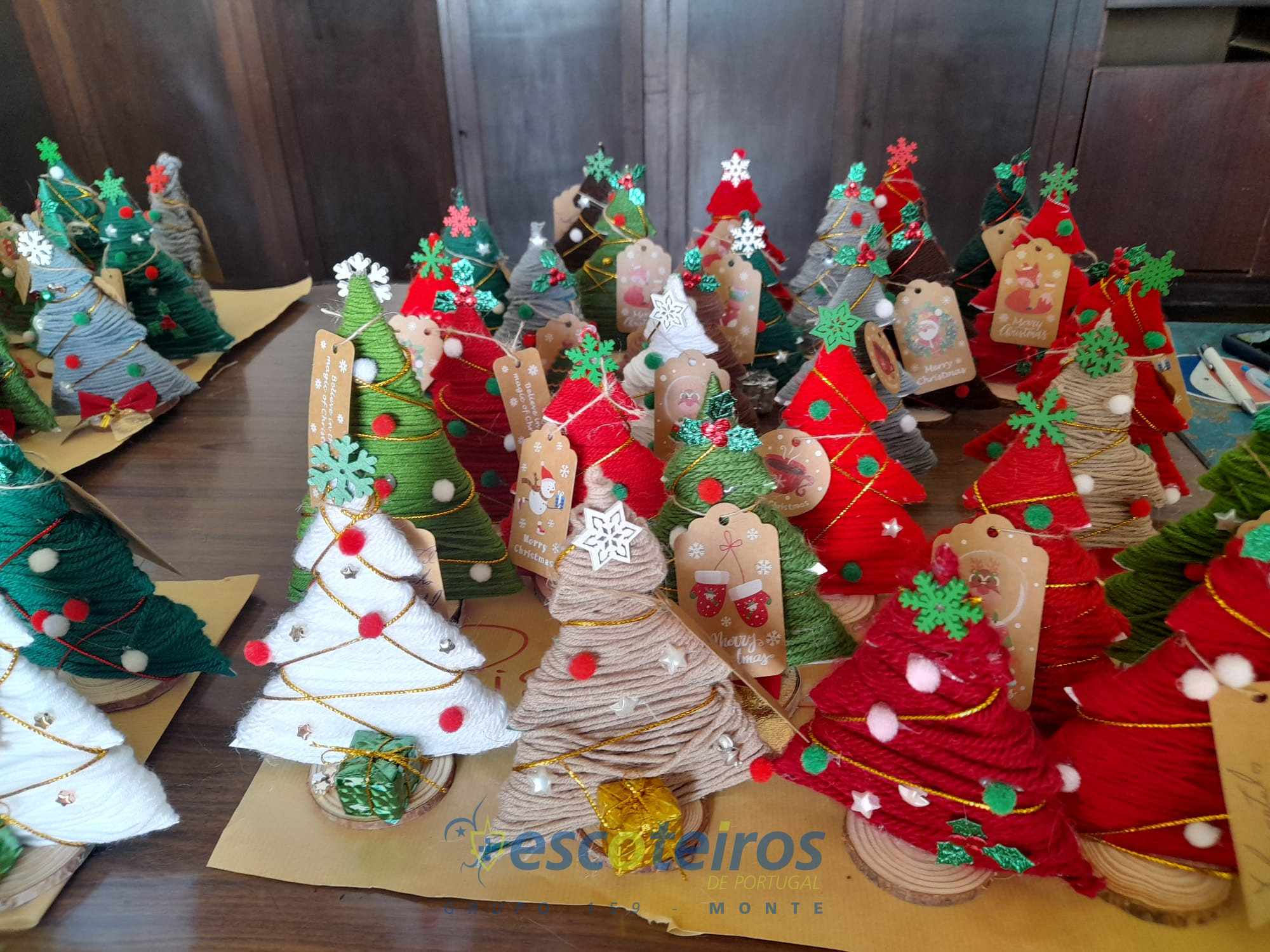 A escolha deste ano foi elaborar um Pinheirinho de Natal, todos meteram, mãos à obra pois eram necessários elaborar algumas dezenas.