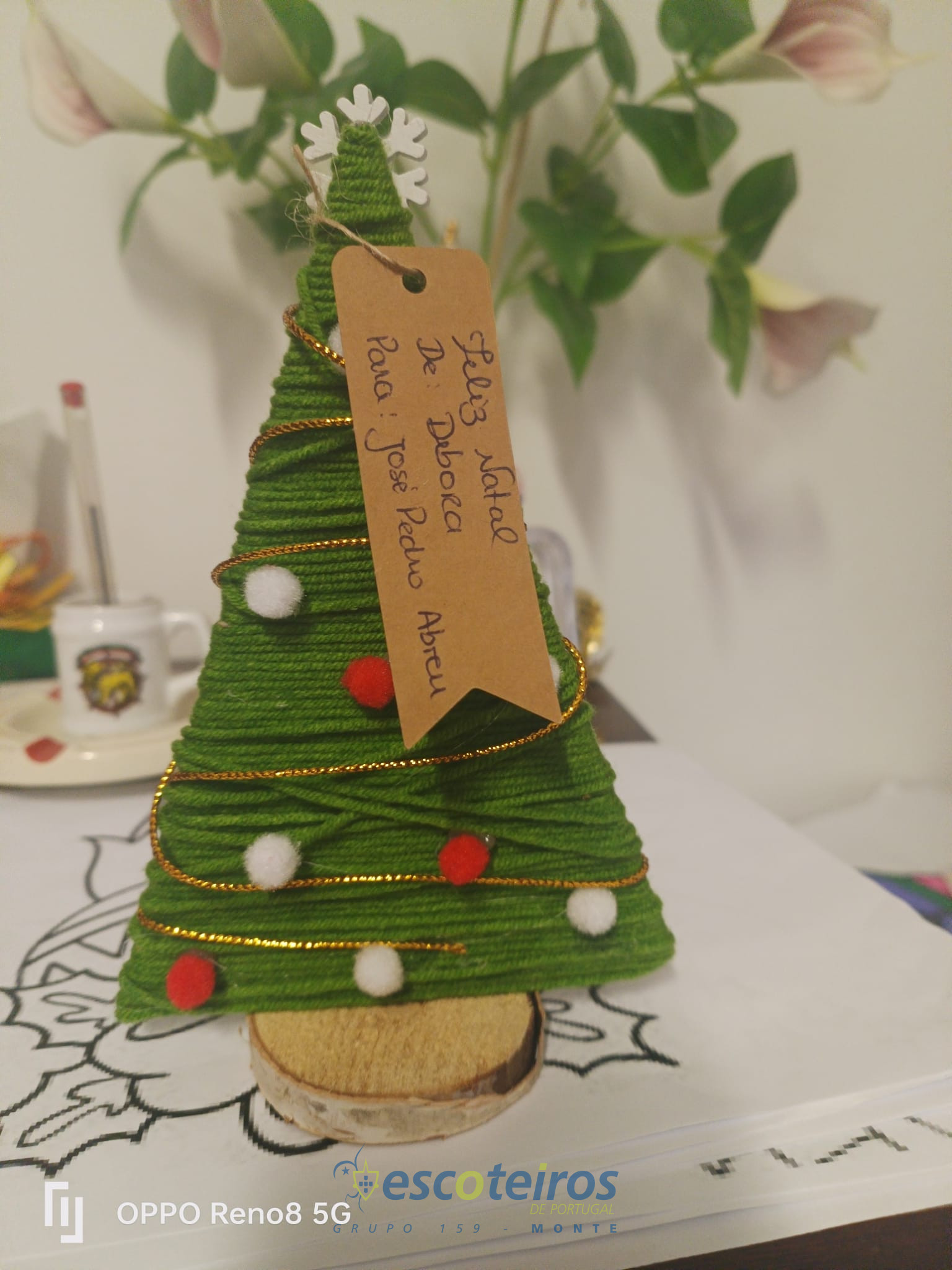 Depois personalizou-se uns pequenos cartões a juntar ao Pinheirinho com o nome do utente que o ia receber e do elemento que o efetuou, alguns dos utentes até são familiares, vizinhos ou conhecidos de muitos de nós o que torna ainda mais especial a nossa prenda.